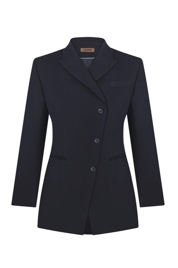 Details:- asymmetrical cut- peak lapels- back welt pockets- button closure- linedMore info:Color: navyComposition: 40% wool,...