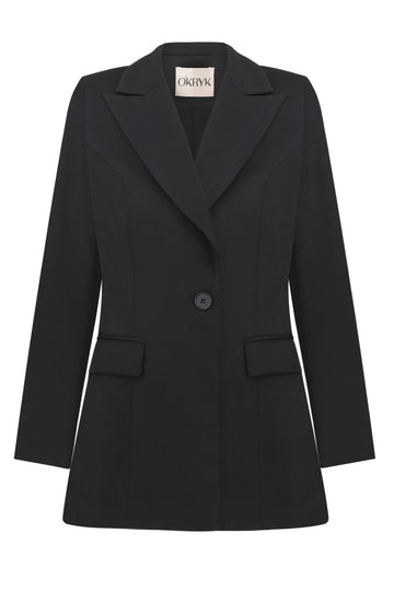 Details:- single-breasted jacket- slim fit- one button closure- pointed lapels- flap pockets- linedMore info:Color: blackComposition:...