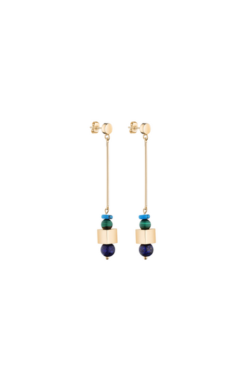Details:- dangling stud earrings - natural malachite, lapis lazuli, turquoise, metal beads- length 7,5cmMore information:Color: gold,...