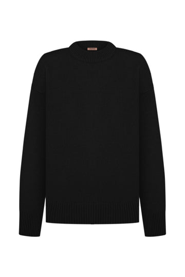 Details:- straight cut- relaxed fit- long sleeves- round neckline- dropped shoulder More info:Color: blackComposition: 50%...