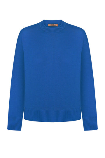 Details:- straight cut- relaxed fit- long sleeve- round necklineMore info:Color: electric blueComposition: 100% merino woolCare:...