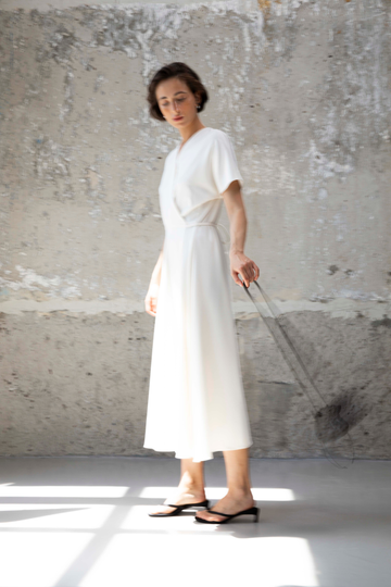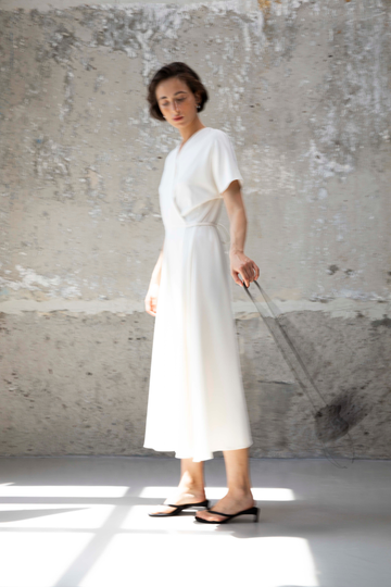The collection prominently showcases viscose: textured, crepe, or with a satin finish. It is complemented by cotton and fine wool, creating a comfortable, summer-friendly combination. The clothing lineup includes mini dresses, classic suit with mini skirt, wrap-around long dress, bermuda shorts, high-waisted long skirt, tank top with wide straps and ribbed t-shirt.