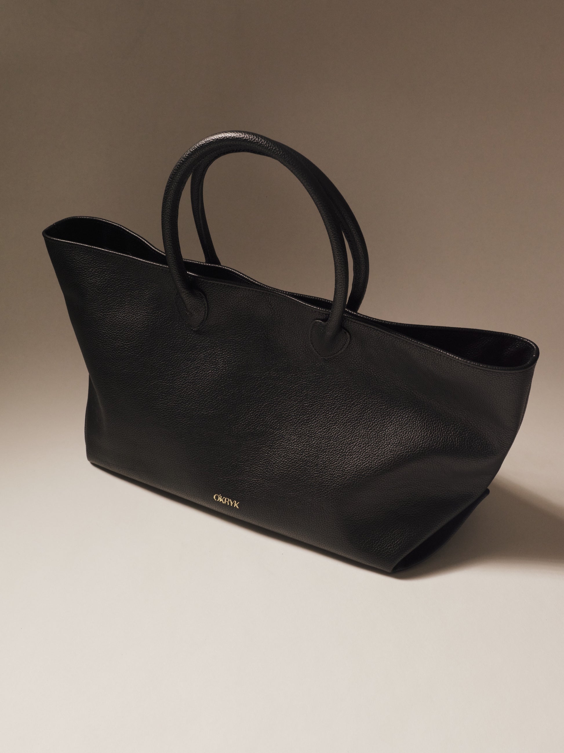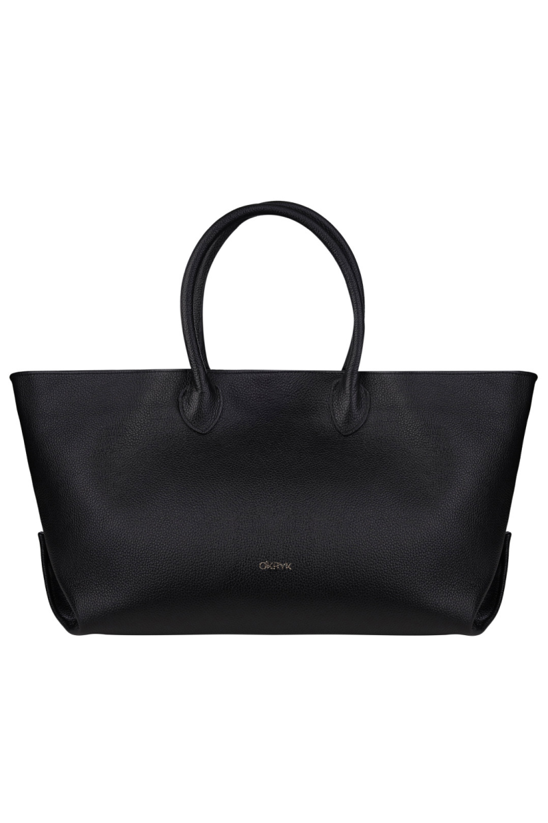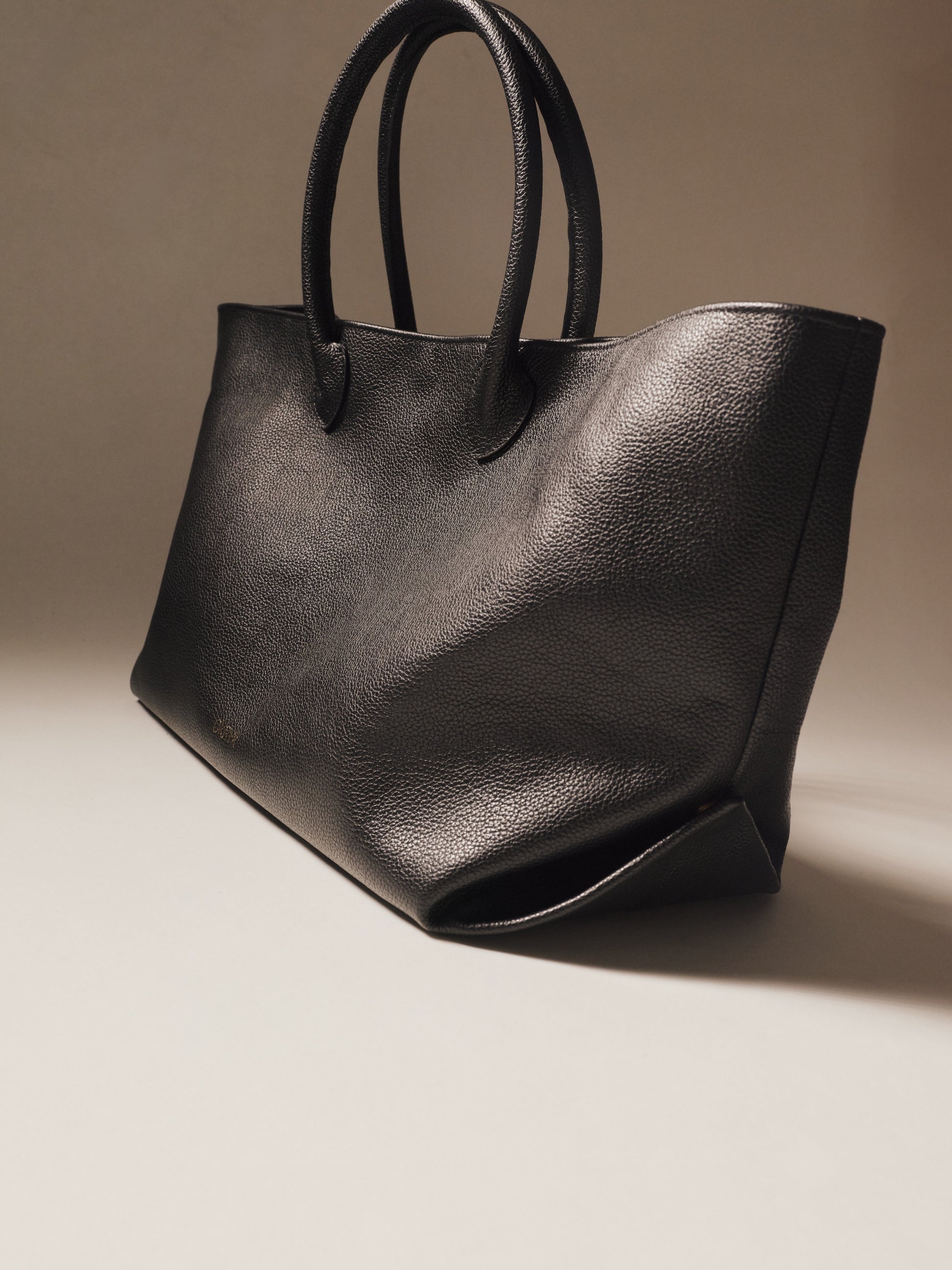 Black Open Top Tote Leather Bag
