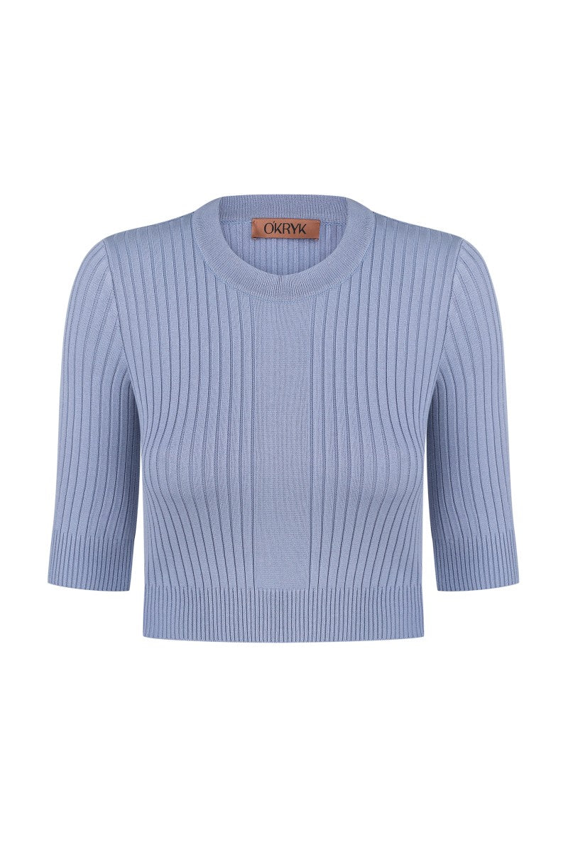 Blue Knitted Crop Top