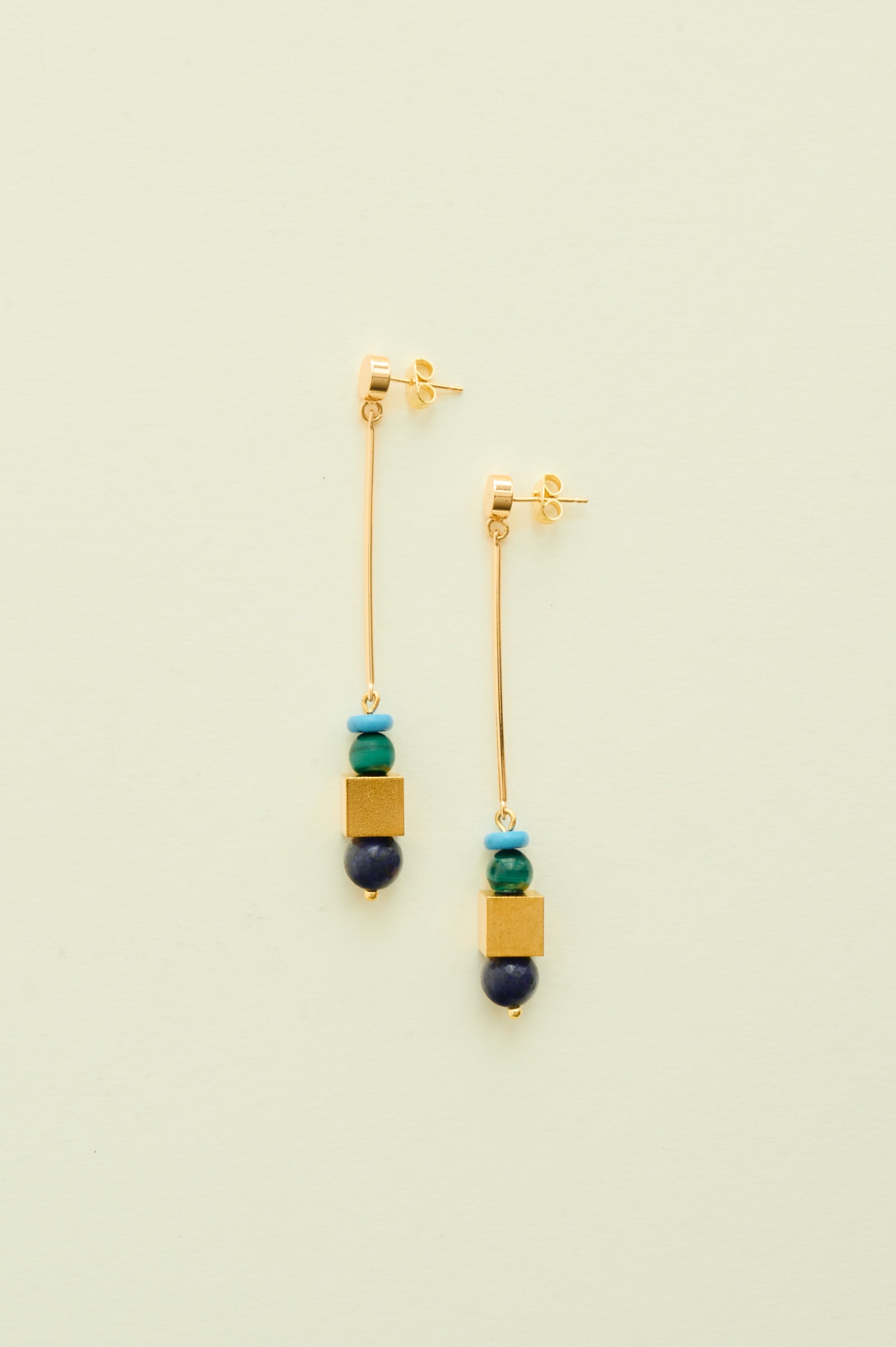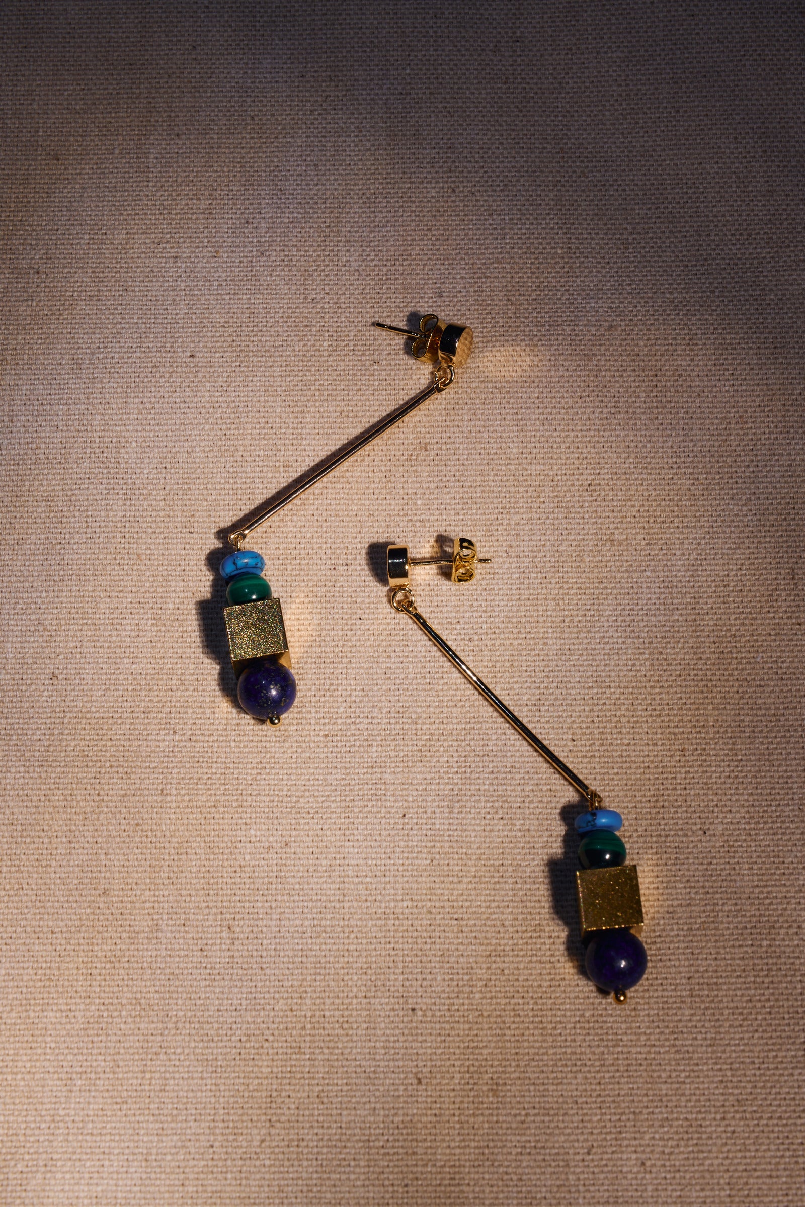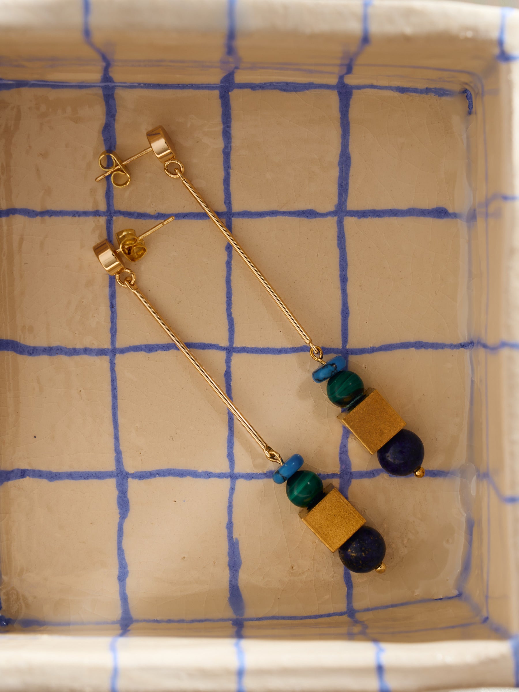 Composition: brass with 24k gold plating, natural malachite, lapis lazuli, turquoise, metal beads