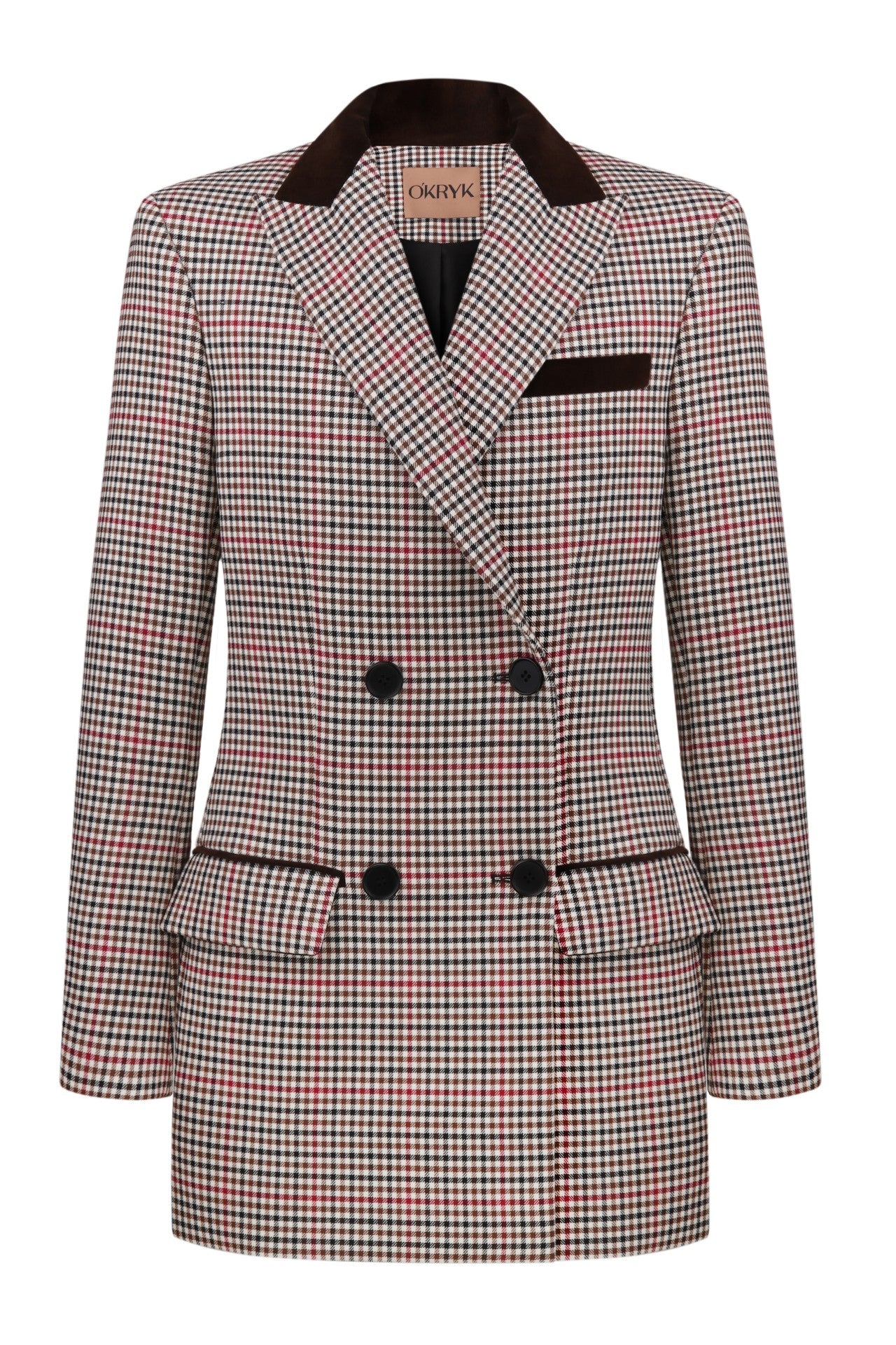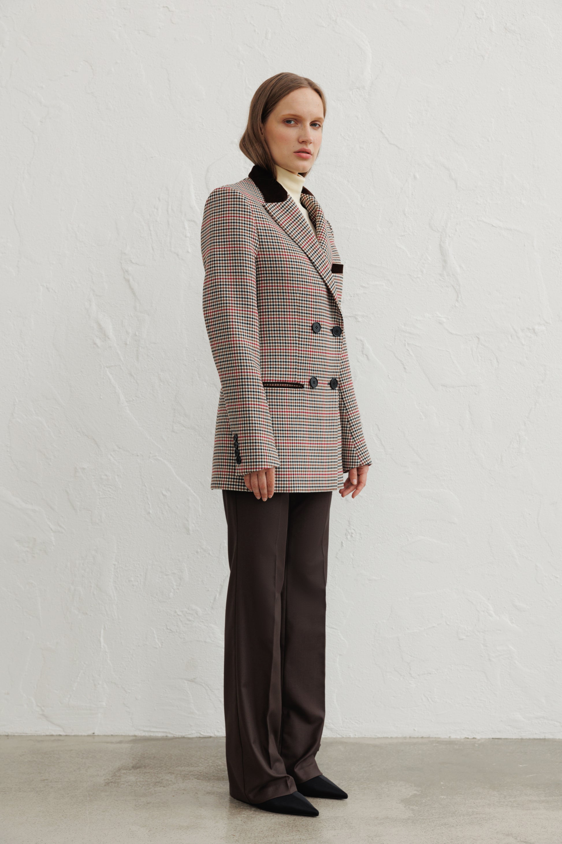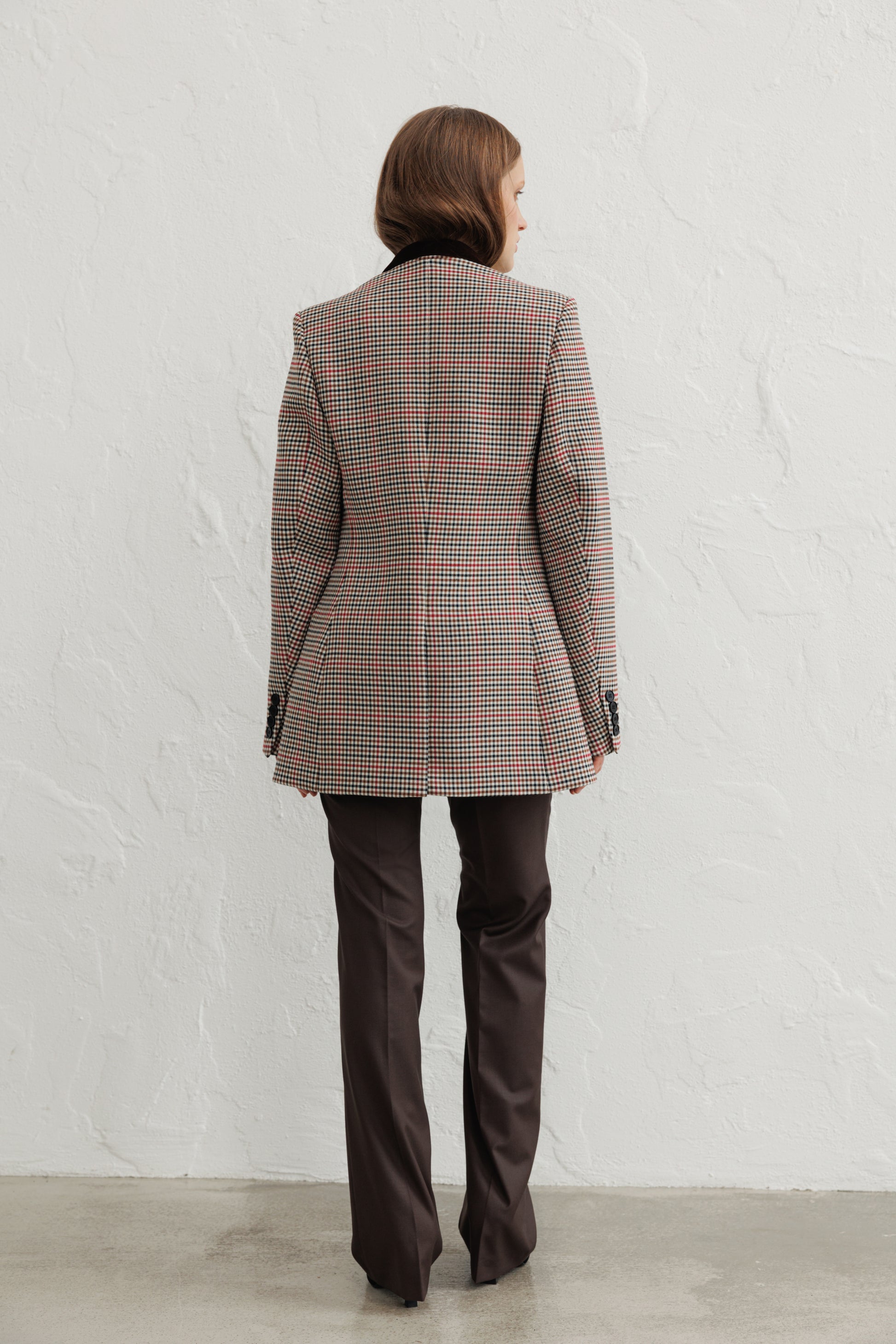 Double-Breasted Checked Wool Blend Blazer