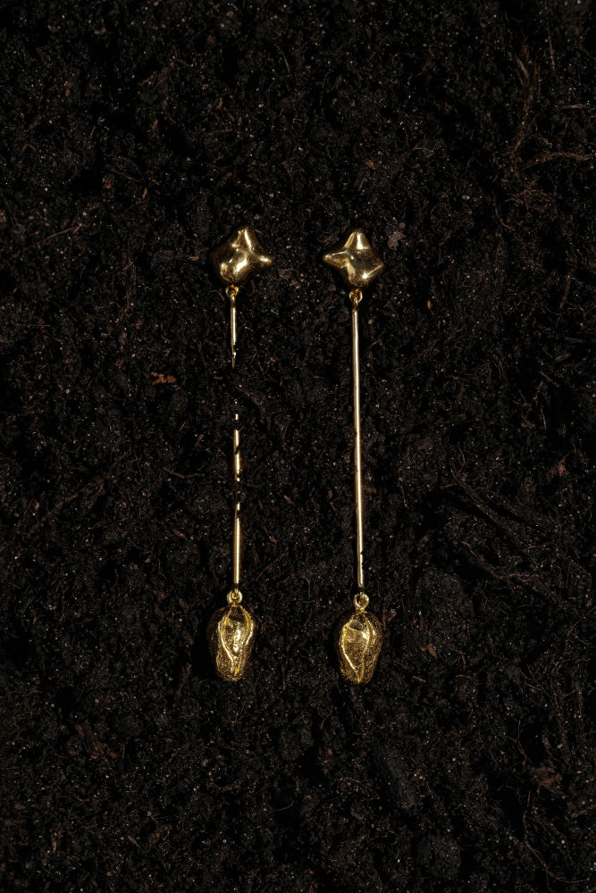 O'KRYK’s first jewelry collection From the Root is dedicated to the changes in each of us. Pieces of jewelry were inspired by the power of a woman and the cycle of her life. Made of silver with gilding. A poppy bud with a drop of dew symbolizes the beginning - the moment when a woman has the most strength. Woman a moment before her best state. Which is always.